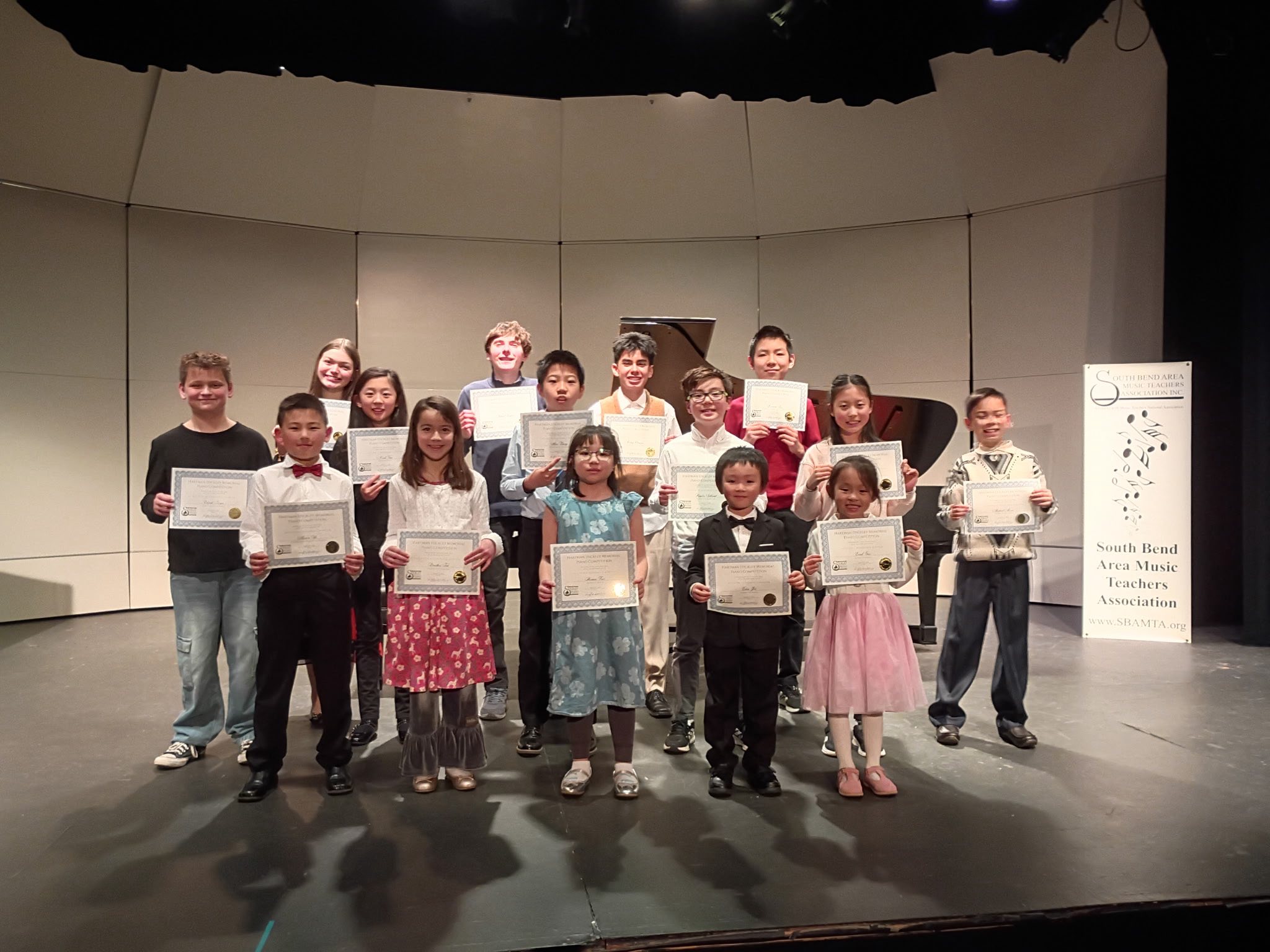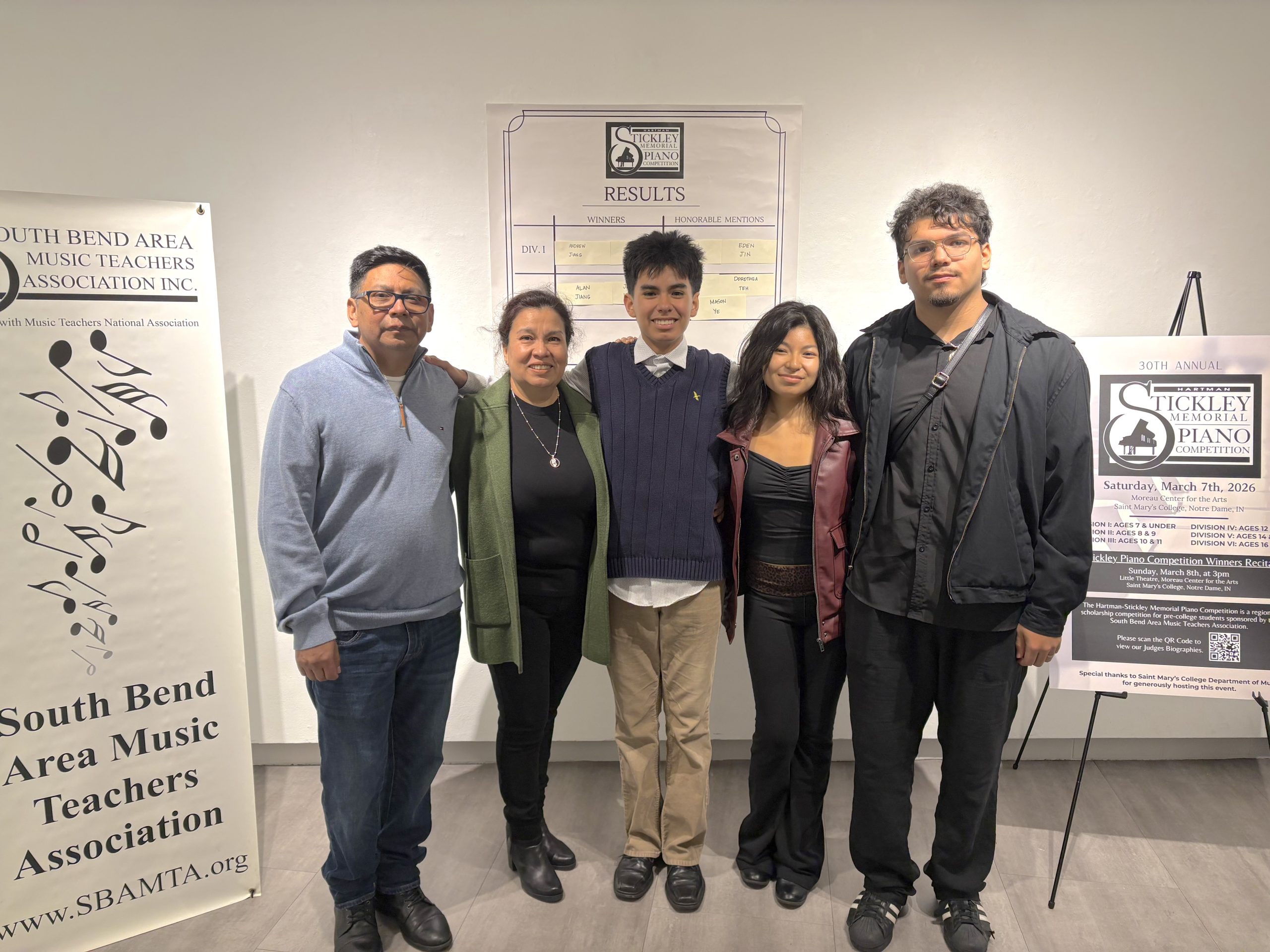 The CSA congratulates six of our student pianists from the studios of Luke and Mary Rose Norell who competed in the 30th Annual Hartman Stickley Memorial Competition at the Moreau Center for the Arts at Saint Mary’s College on Saturday March 7, 2026: Lucas Graber, Luciana Halm, Lawrence Norell, Rodrigo Oropeza, Helena Přádná, and Elijah Troyer. Special congratulations go to Elijah Troyer and Rodrigo Oropeza, who both were recognized with the “Honorable Mention” designation in their respective divisions! 57 students from the Michiana region competed in six age divisions, culminating with the Winner’s Recital on at 3:00 p.m. on Sunday March 8. All events were free and open to the public.