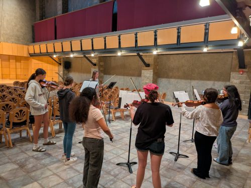 Julia Koch coaches a first violin sectional rehearsal for the Youth Honors Orchestra program